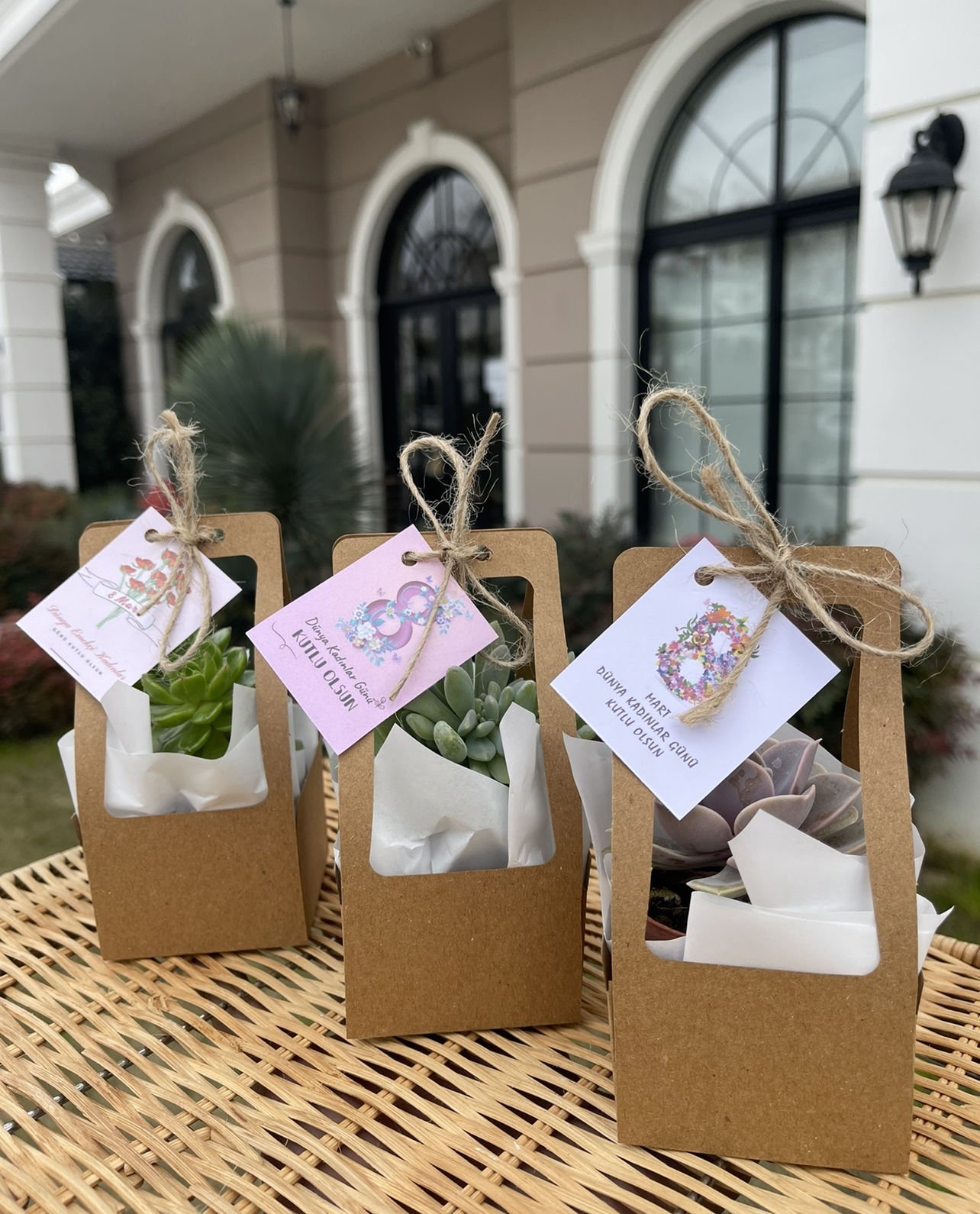 Nişan düğün,sünnet,doğum günü ve benzeri organizasyonlarınızda hediye dağıtmak için süslemeli sukulentleri sepete ekledikten sonra ayrıca isimlik bölümünden kişiye özel isimlik tasarlatabilirsiz. Almış olduğunuz Süslemeli Sukulentlere uyumlu olarak isimlik çerçevesini seçip açıklama kısmına (isim,tarih,sevgiyle büyütünüz vs) istediğiniz bilgileri yazıp bitki sayısı kadar sepete ekleyip satın alabilirsiniz. Bu konuda profesyonel olan ekibimiz kısa sürede sizin için isimlik tasarımını yapar daha sonra baskıya alır ardından kesilip çubuk yapıştırılır ve ambalajlanıp kargolanır.