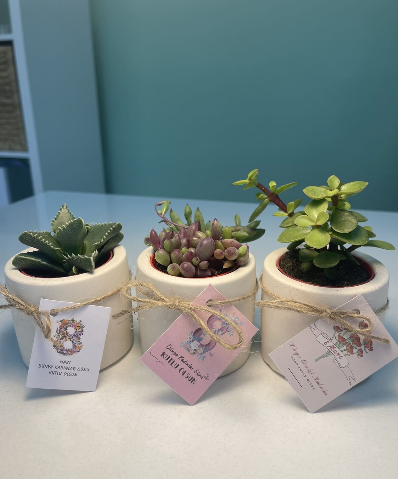 Nişan düğün,sünnet,doğum günü ve benzeri organizasyonlarınızda hediye dağıtmak için süslemeli sukulentleri sepete ekledikten sonra ayrıca isimlik bölümünden kişiye özel isimlik tasarlatabilirsiz. Almış olduğunuz Süslemeli Sukulentlere uyumlu olarak isimlik çerçevesini seçip açıklama kısmına (isim,tarih,sevgiyle büyütünüz vs) istediğiniz bilgileri yazıp bitki sayısı kadar sepete ekleyip satın alabilirsiniz. Bu konuda profesyonel olan ekibimiz kısa sürede sizin için isimlik tasarımını yapar daha sonra baskıya alır ardından kesilip çubuk yapıştırılır ve ambalajlanıp kargolanır.