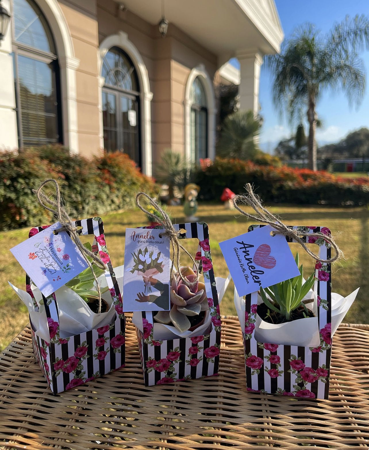 SÜS OLARAK KULLANILAN JÜT SÜSLEMELER KARGODA DEFORME OLMAMASI AÇISINDAN SAKSILARA TAKILI HALDE GÖNDERİLMEMEKTEDİR, PRATİK ŞEKİLDE SAKSIYA GEÇİRME İŞİNİ MÜŞTERİ KENDİSİ YAPAR.