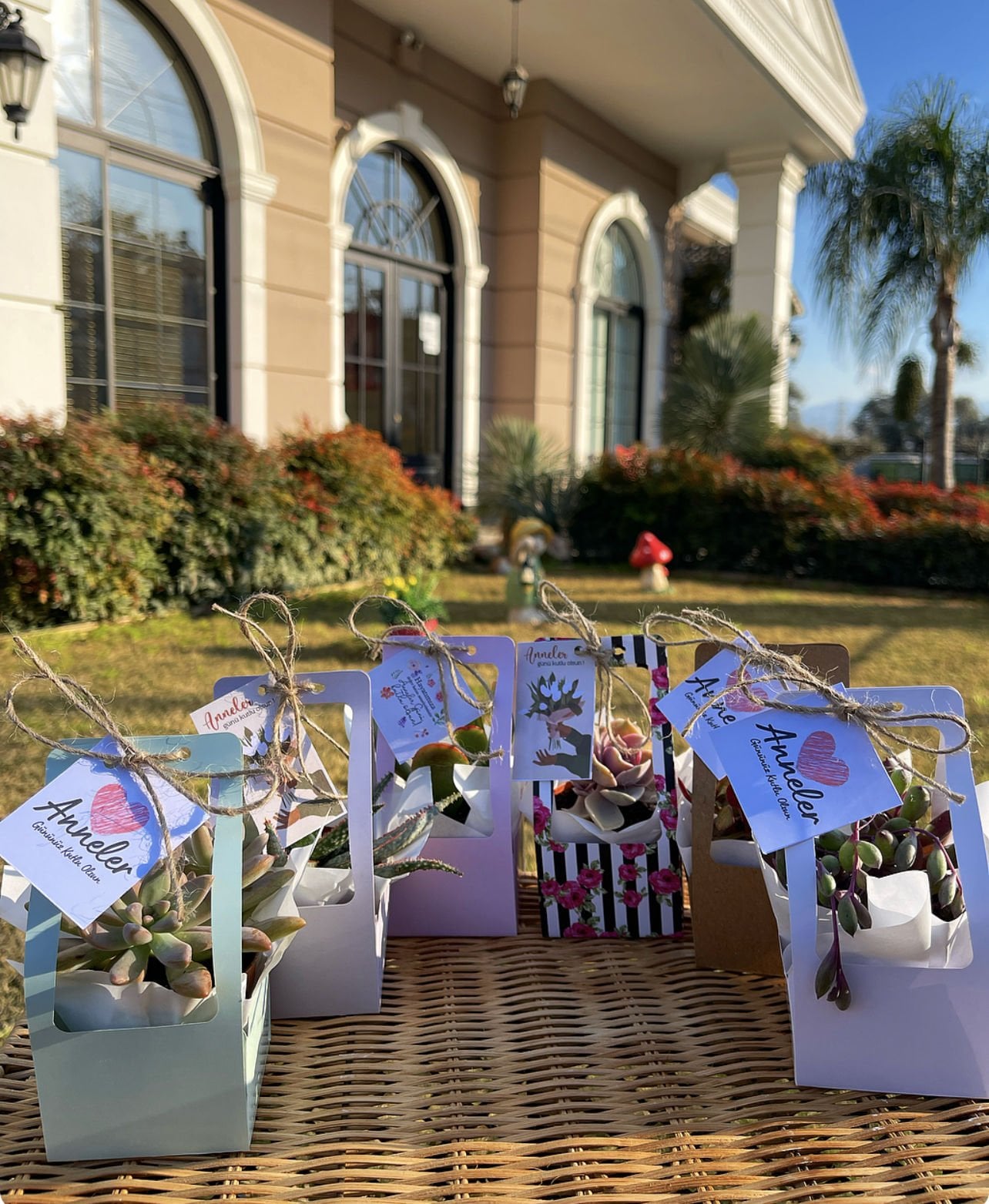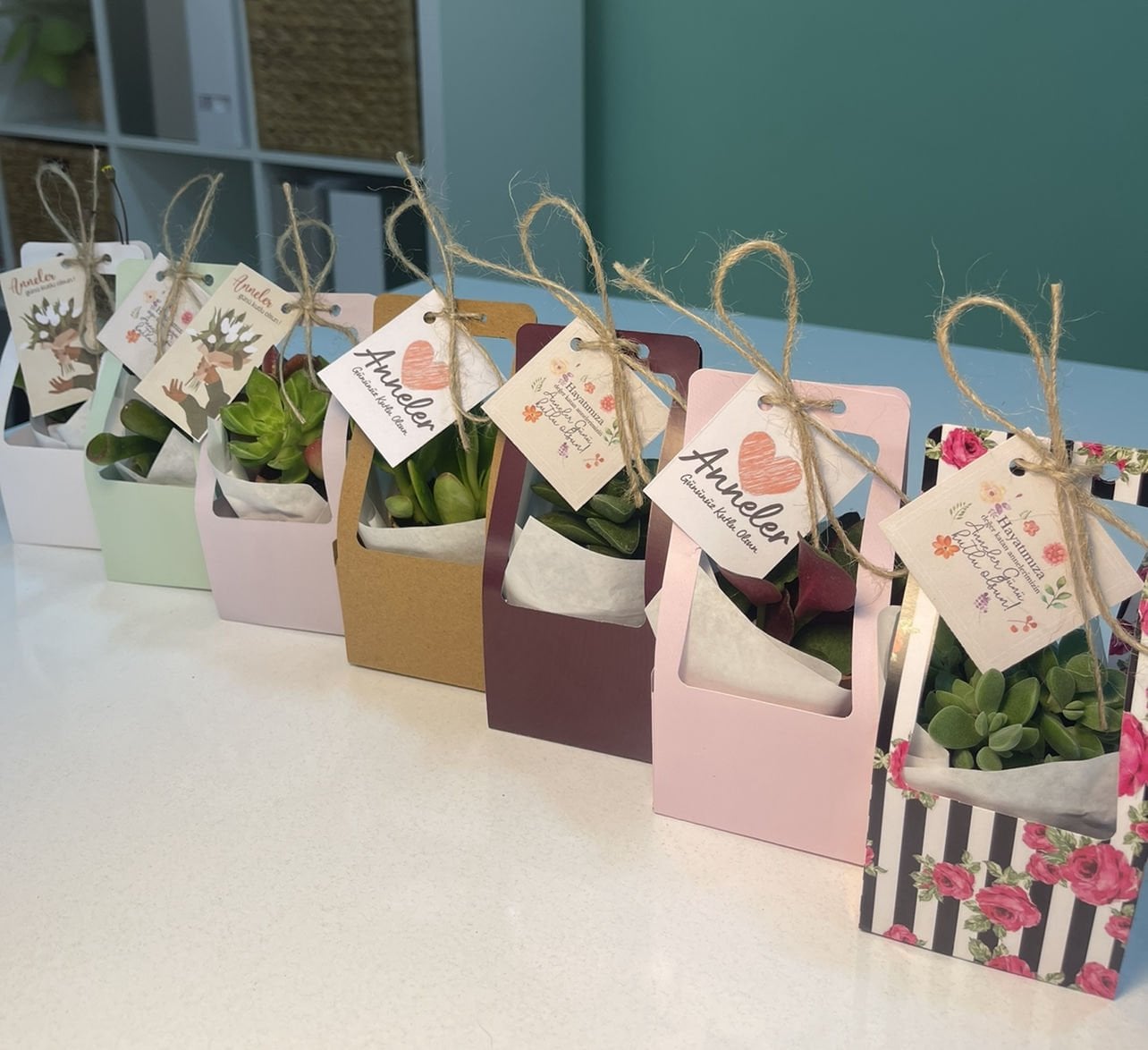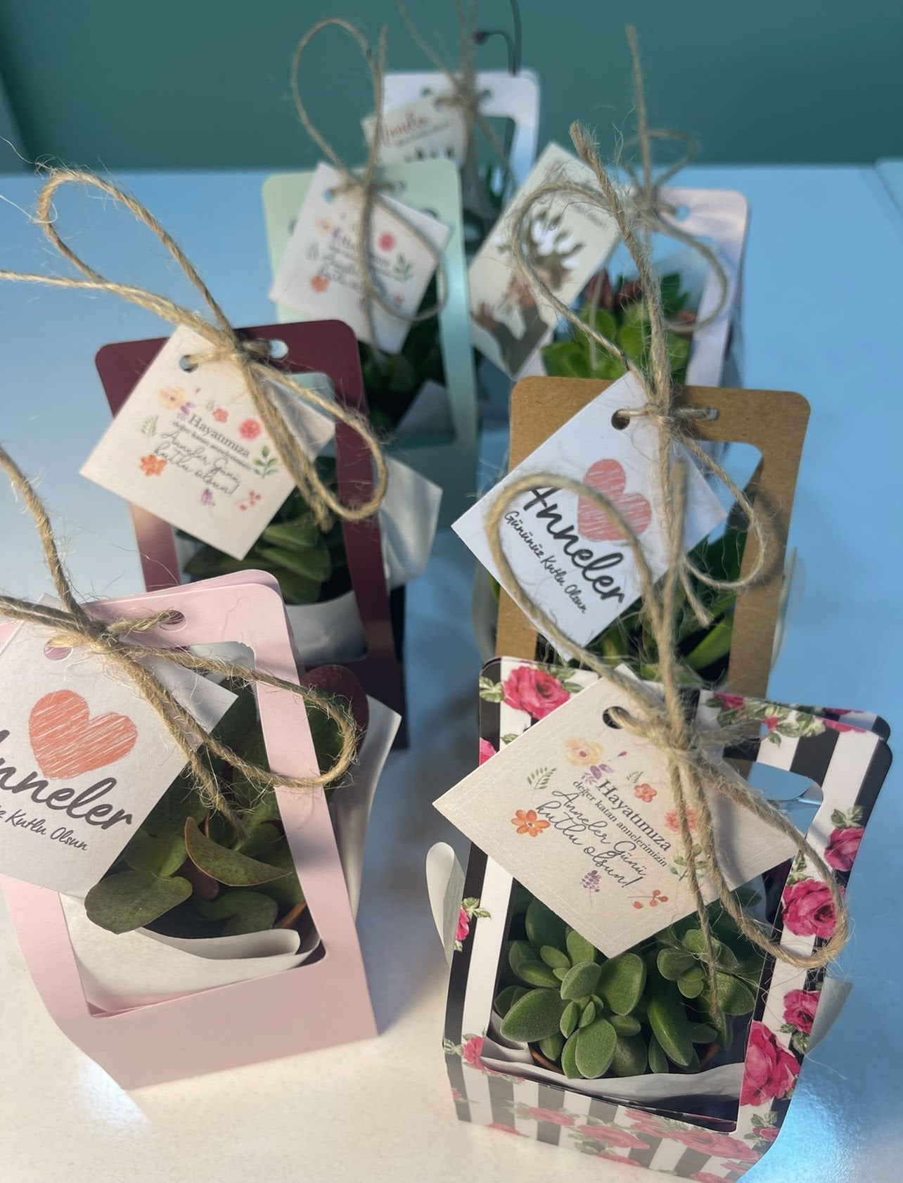 Nişan düğün,sünnet,doğum günü ve benzeri organizasyonlarınızda hediye dağıtmak için süslemeli sukulentleri sepete ekledikten sonra ayrıca isimlik bölümünden kişiye özel isimlik tasarlatabilirsiz. Almış olduğunuz Süslemeli Sukulentlere uyumlu olarak isimlik çerçevesini seçip açıklama kısmına (isim,tarih,sevgiyle büyütünüz vs) istediğiniz bilgileri yazıp bitki sayısı kadar sepete ekleyip satın alabilirsiniz. Bu konuda profesyonel olan ekibimiz kısa sürede sizin için isimlik tasarımını yapar daha sonra baskıya alır ardından kesilip çubuk yapıştırılır ve ambalajlanıp kargolanır.