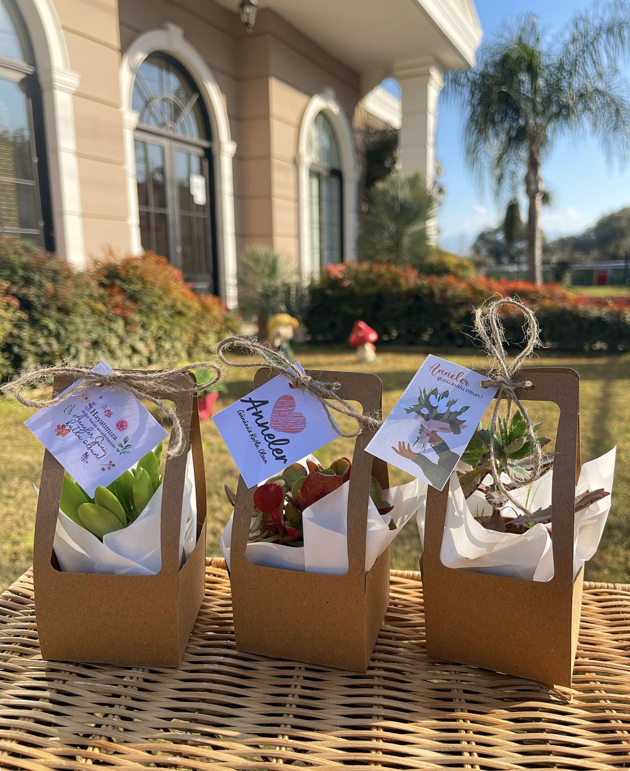 Nişan düğün,sünnet,doğum günü ve benzeri organizasyonlarınızda hediye dağıtmak için süslemeli sukulentleri sepete ekledikten sonra ayrıca isimlik bölümünden kişiye özel isimlik tasarlatabilirsiz. Almış olduğunuz Süslemeli Sukulentlere uyumlu olarak isimlik çerçevesini seçip açıklama kısmına (isim,tarih,sevgiyle büyütünüz vs) istediğiniz bilgileri yazıp bitki sayısı kadar sepete ekleyip satın alabilirsiniz. Bu konuda profesyonel olan ekibimiz kısa sürede sizin için isimlik tasarımını yapar daha sonra baskıya alır ardından kesilip çubuk yapıştırılır ve ambalajlanıp kargolanır.