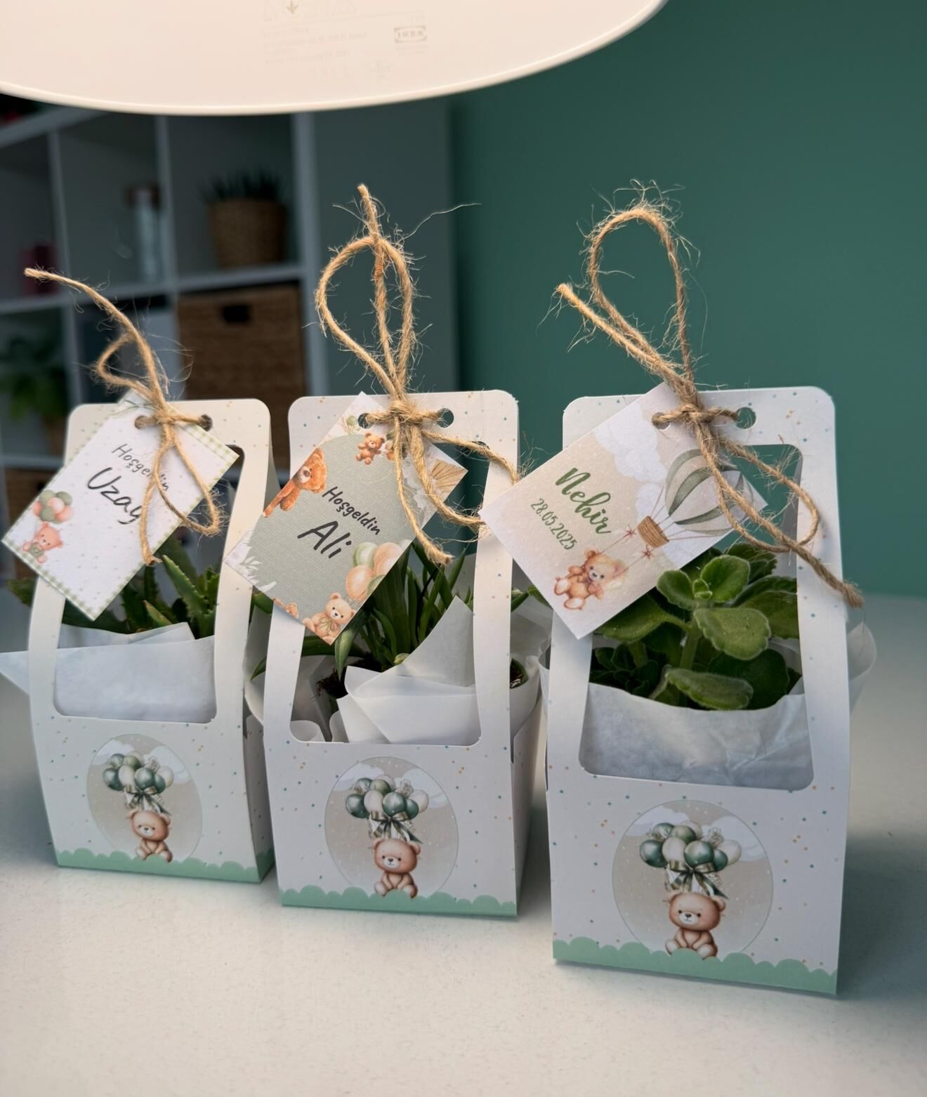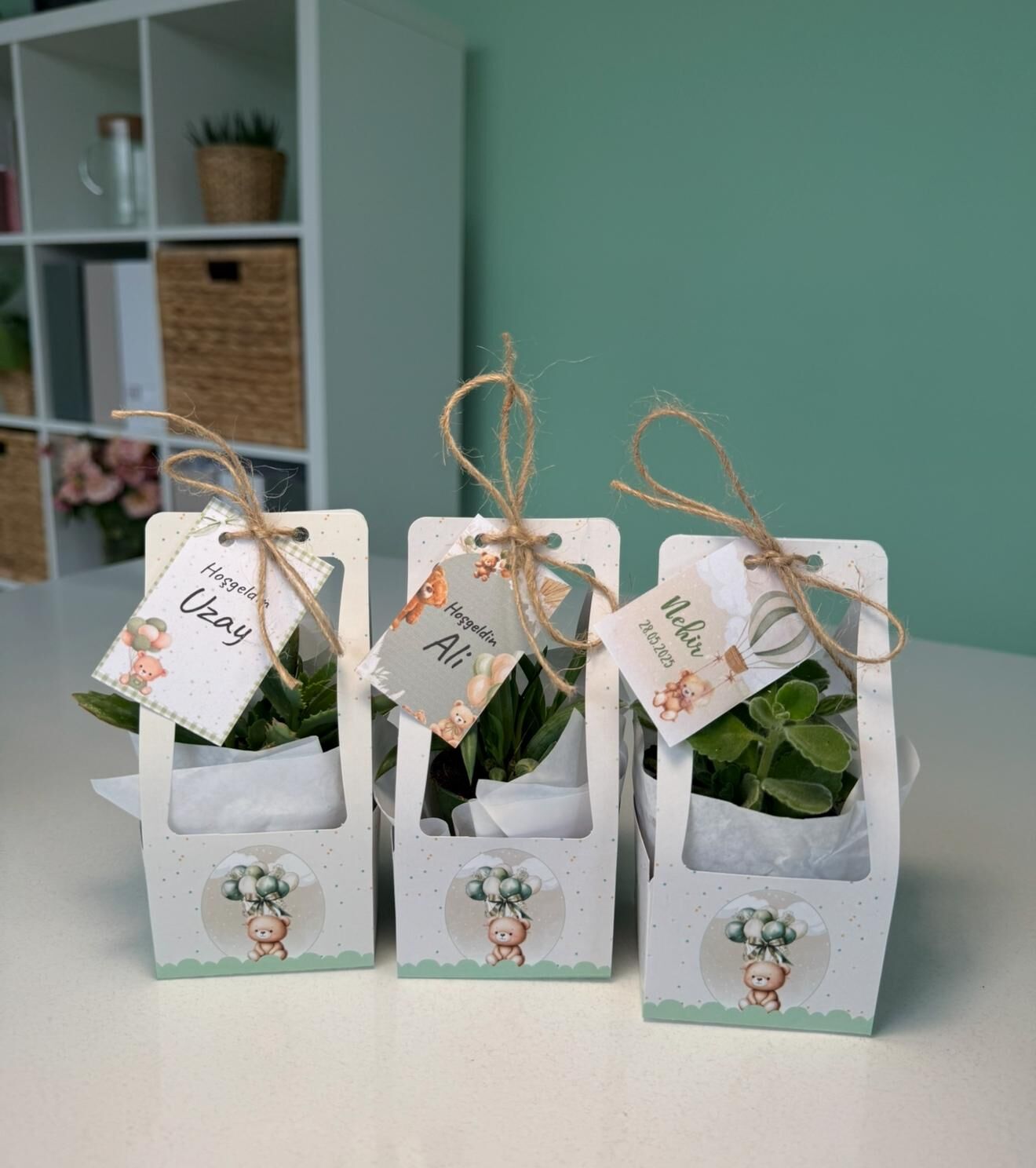 Nişan düğün,sünnet,doğum günü ve benzeri organizasyonlarınızda hediye dağıtmak için süslemeli sukulentleri sepete ekledikten sonra ayrıca isimlik bölümünden kişiye özel isimlik tasarlatabilirsiz. Almış olduğunuz Süslemeli Sukulentlere uyumlu olarak isimlik çerçevesini seçip açıklama kısmına (isim,tarih,sevgiyle büyütünüz vs) istediğiniz bilgileri yazıp bitki sayısı kadar sepete ekleyip satın alabilirsiniz. Bu konuda profesyonel olan ekibimiz kısa sürede sizin için isimlik tasarımını yapar daha sonra baskıya alır ardından kesilip çubuk yapıştırılır ve ambalajlanıp kargolanır.