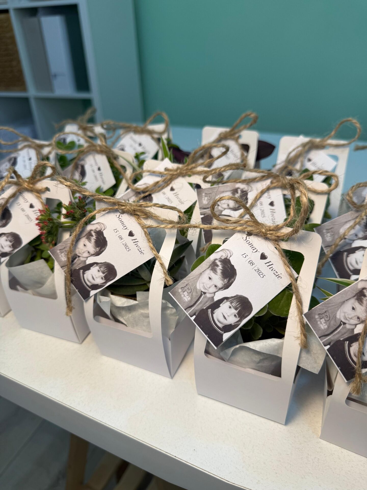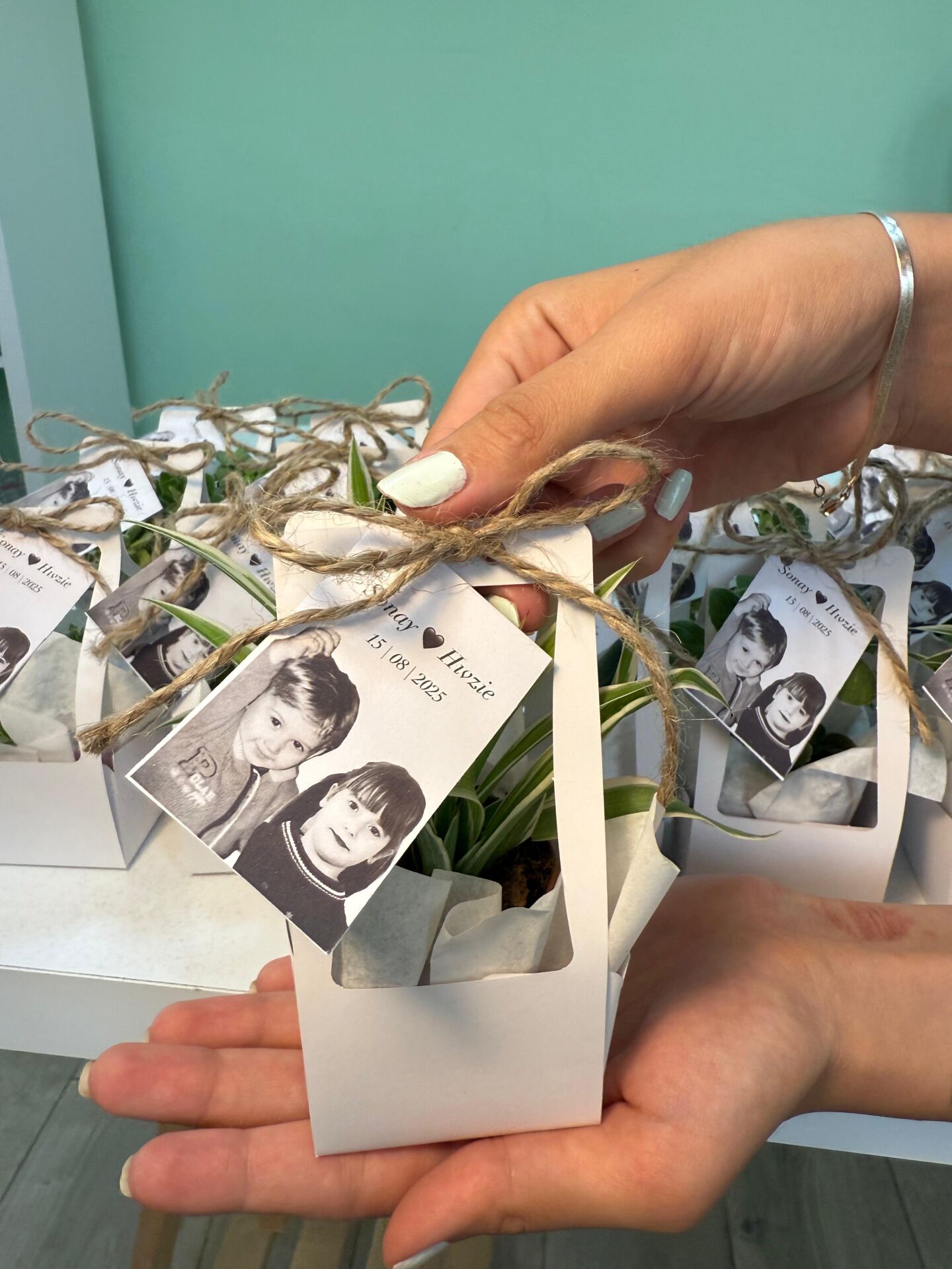 Nişan düğün,sünnet,doğum günü ve benzeri organizasyonlarınızda hediye dağıtmak için süslemeli sukulentleri sepete ekledikten sonra ayrıca isimlik bölümünden kişiye özel isimlik tasarlatabilirsiz. Almış olduğunuz Süslemeli Sukulentlere uyumlu olarak isimlik çerçevesini seçip açıklama kısmına (isim,tarih,sevgiyle büyütünüz vs) istediğiniz bilgileri yazıp bitki sayısı kadar sepete ekleyip satın alabilirsiniz. Bu konuda profesyonel olan ekibimiz kısa sürede sizin için isimlik tasarımını yapar daha sonra baskıya alır ardından kesilip çubuk yapıştırılır ve ambalajlanıp kargolanır.
