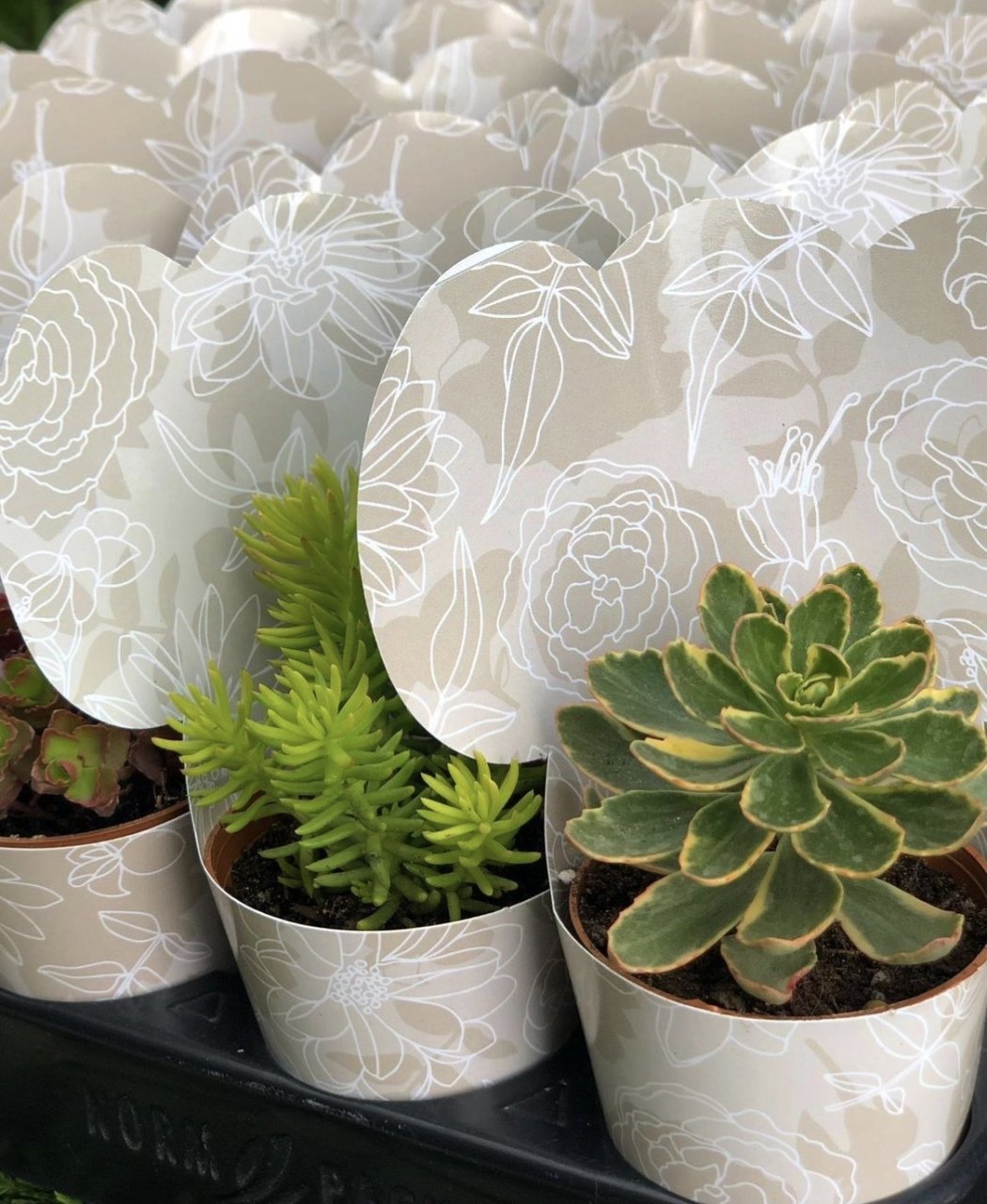 Nişan düğün,sünnet,doğum günü ve benzeri organizasyonlarınızda hediye dağıtmak için süslemeli sukulentleri sepete ekledikten sonra ayrıca isimlik bölümünden kişiye özel isimlik tasarlatabilirsiz. Almış olduğunuz Süslemeli Sukulentlere uyumlu olarak isimlik çerçevesini seçip açıklama kısmına (isim,tarih,sevgiyle büyütünüz vs) istediğiniz bilgileri yazıp bitki sayısı kadar sepete ekleyip satın alabilirsiniz. Bu konuda profesyonel olan ekibimiz kısa sürede sizin için isimlik tasarımını yapar daha sonra baskıya alır ardından kesilip çubuk yapıştırılır ve ambalajlanıp kargolanır.